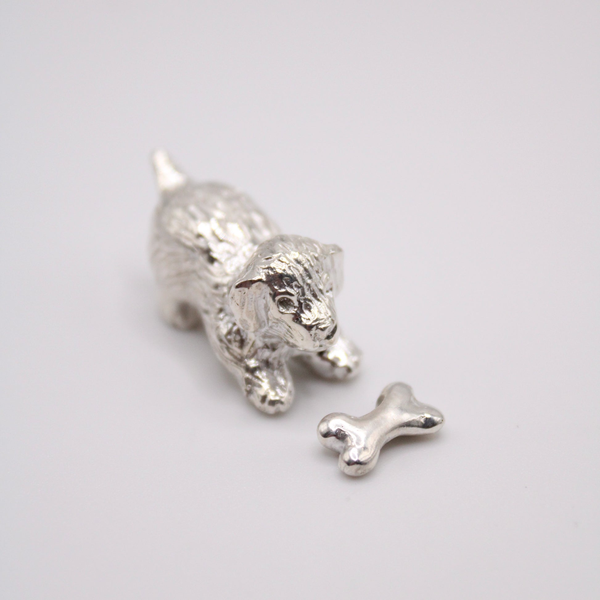 Originally hand carved in jeweler's wax, this puppy is sure to add a little whimsy to your workspace. Made to order in sterling silver.
